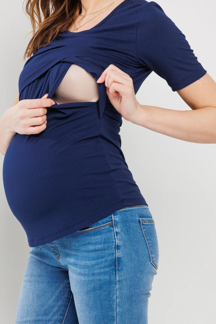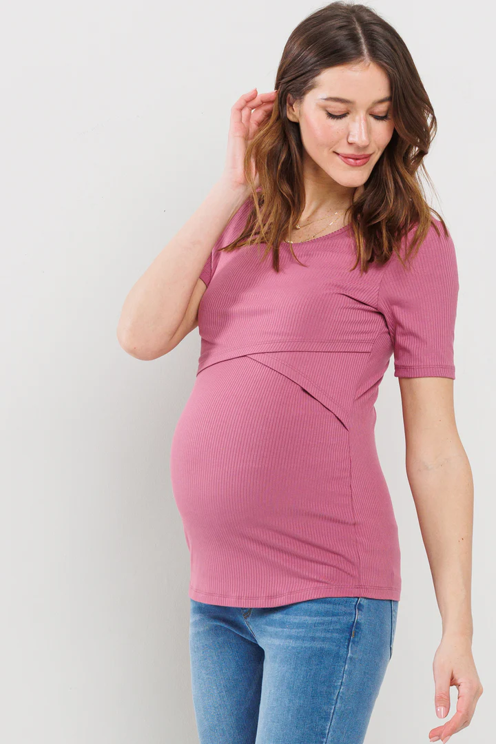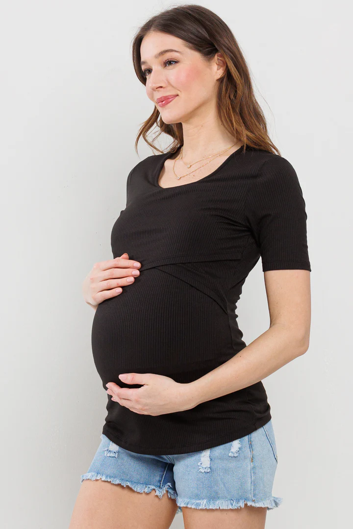 Hello Miz Double Layer Front Maternity Nursing Short Sleeve Top