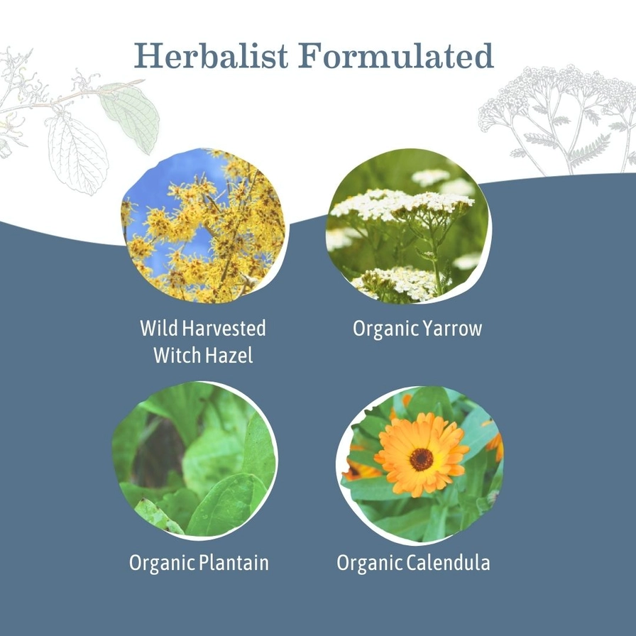 Sea salt, Avena sativa (Oatmeal) kernel meal*, Hamamelis virginiana (Witch Hazel) leaf+, Achillea millefolium (Yarrow) flower*, Plantago major (Plantain) leaf*, Calendula officinalis (Calendula) flower*