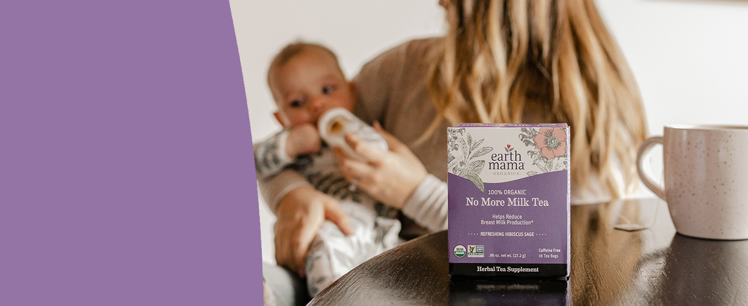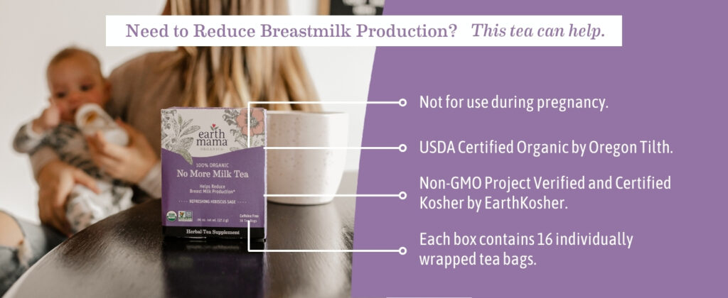 Earth Mama’s Organic No More Milk Tea is a blend of herbs historically used to help ease unwanted milk production, when weaning from breastfeeding to dry up breast milk or after miscarriage, pregnancy loss, or stillbirth. This USDA Certified Organic tea is naturally caffeine-free and thoughtfully formulated with sage, peppermint and parsley, alongside tangy hibiscus* flower.