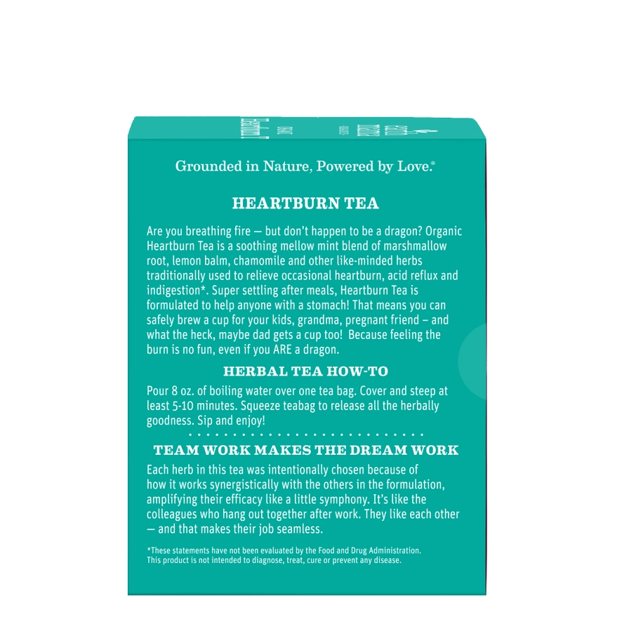 Is your heart burning — in a special, gastrointestinal way? Earth Mama’s Organic Heartburn Tea is a soothing blend of organic marshmallow root, lemon balm, and chamomile, along with the added benefit of spearmint and raspberry leaf. This mellow minty tea is formulated safe for pregnancy with herbs traditionally used to soothe occasional heartburn* but effective For Everyone and Their Mother®.