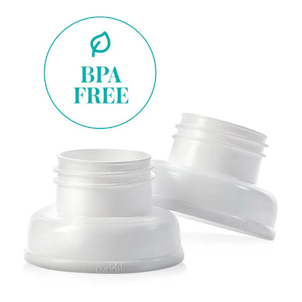 Pump directly into your Evenflo Feeding Balance + Wide Bottles with the Evenflo Feeding Balance + Pump Adapters. These adapters will help you save time and avoid messy transfer spills. The Balance + Pump Adapters are compatible with all Evenflo Feeding Advanced Breast Pumps and most other standard neck breast pump brands. Simply screw the adapter into your pump flange base, attach your Balance + Wide Bottle, and begin pumping. The adapters are free of BPA, polycarbonates, PVC and phthalates, and they are made of FDA-approved food grade material.