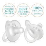 EASY-GRIP DESIGN – This flexible, 1-piece silicone pacifier has an easy-grip handle that makes it easy for both mom and baby to hold