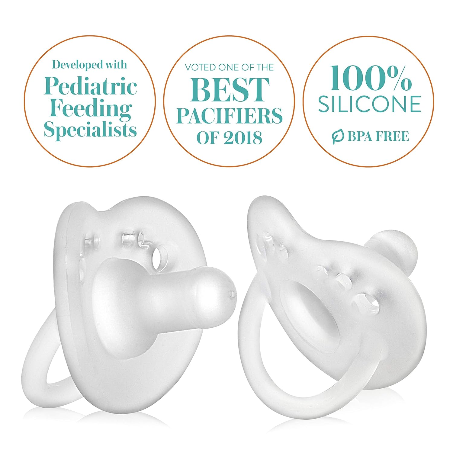 EASY TO CLEAN – The cylindrical pacifiers come in a re-sealable steam sanitization bag that can be used up to 5 times for easy cleaning Just add 2 ounces of water and place in the microwave (see instructions for heating times)