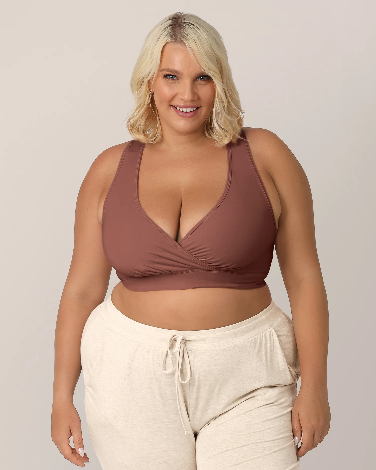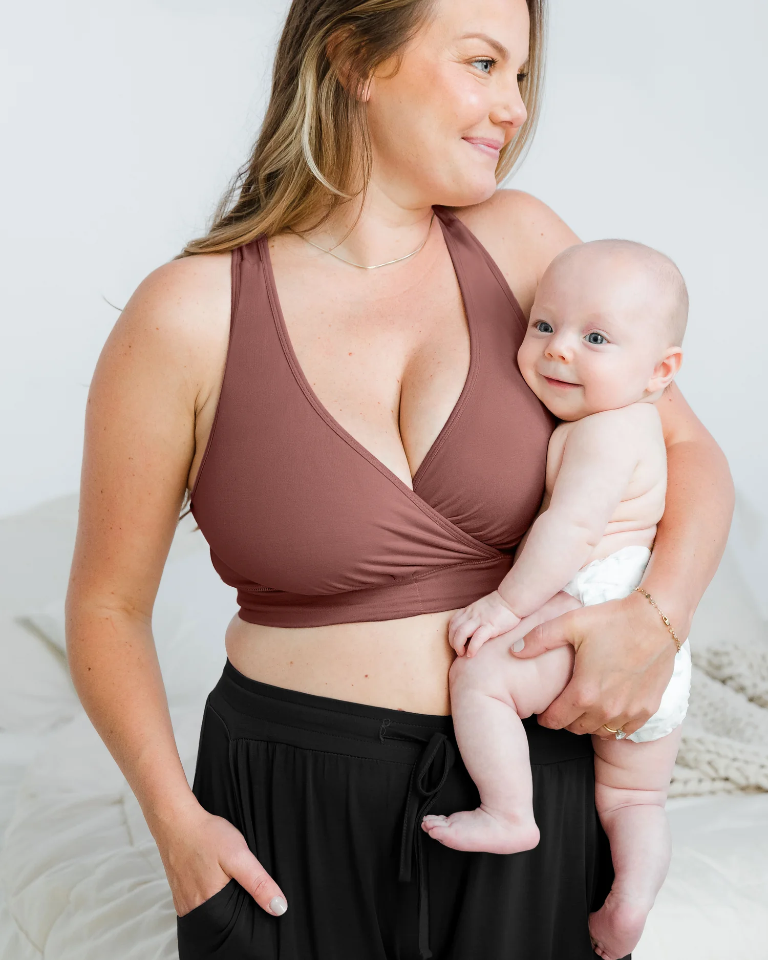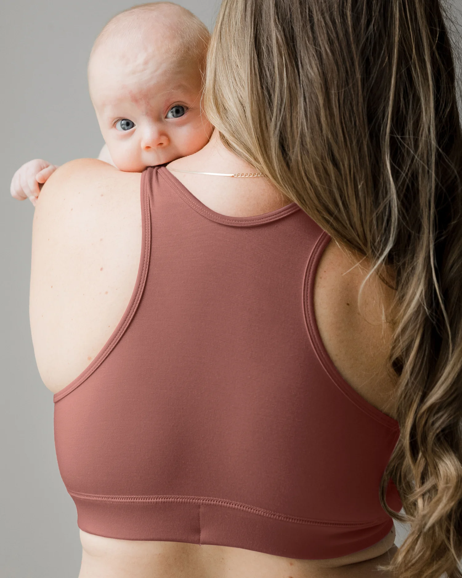 Simplicity at its finest! The French Terry Nursing Bra features a classic crossover design and super-soft, stretchy fabric – perfect for pregnancy and postpartum, lounging and sleeping. This wireless racerback nursing bra pulls aside for easy breastfeeding access and skin-to-skin contact. Grab the ultra-comfy bra that started it all.