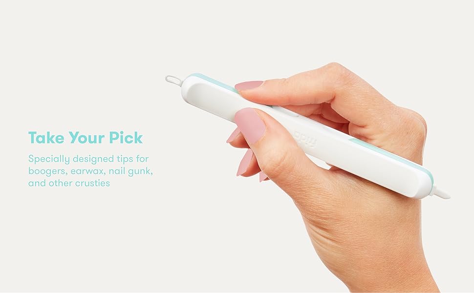 The ultimate booger busting team brings you our 3-in-1 Picker. It’s as grossly satisfying as sucking snot, but perfectly designed to clean crusties + gunk out of all bodily crevices. Safety design ensures tip from going in too far up nose & ear.