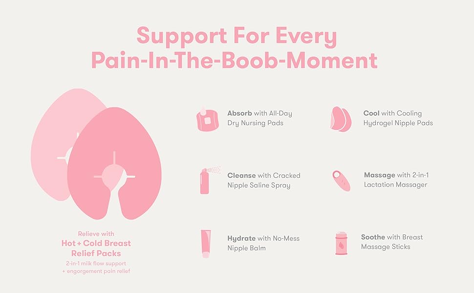 Breastfeeding pain relief, Engorgement, Mastitis, Milk flow issues, Lactation support