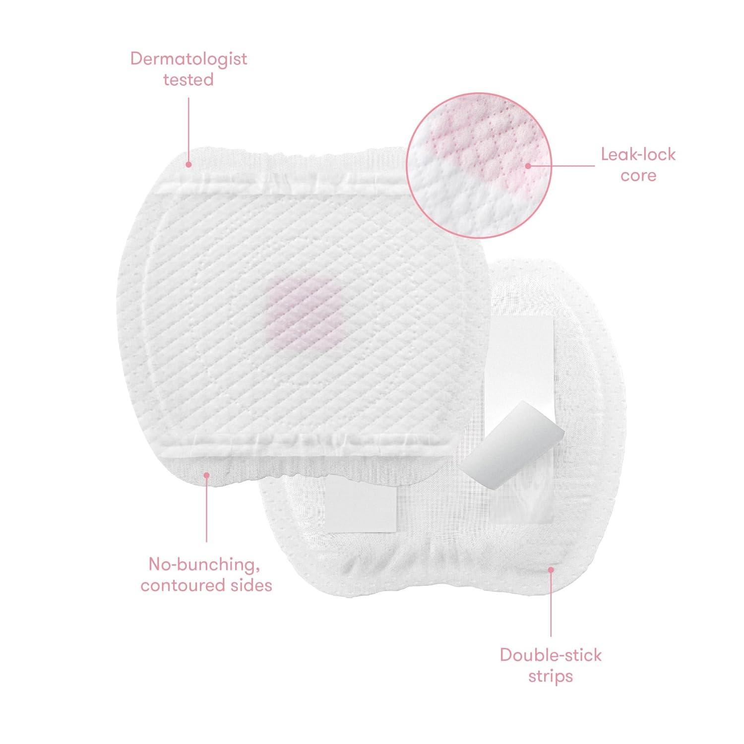Contoured design prevents bunching and the leak-lock core quickly disperses milk to keep nipples comfortably dry