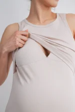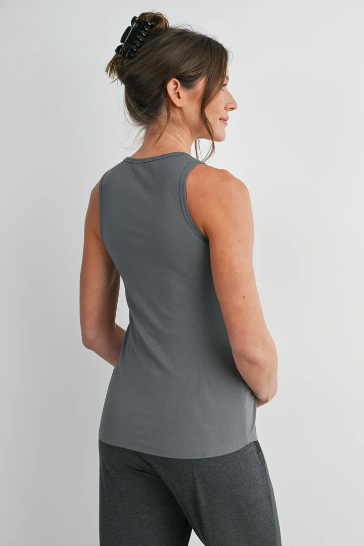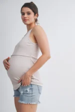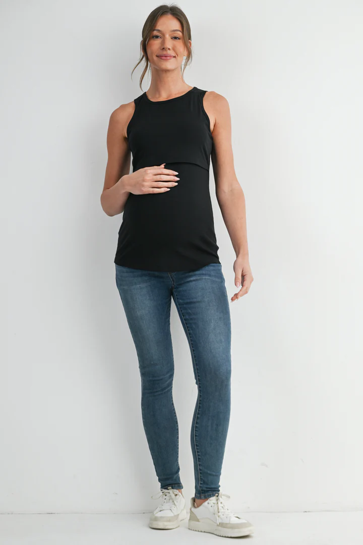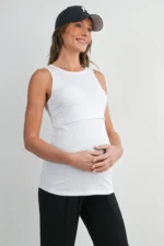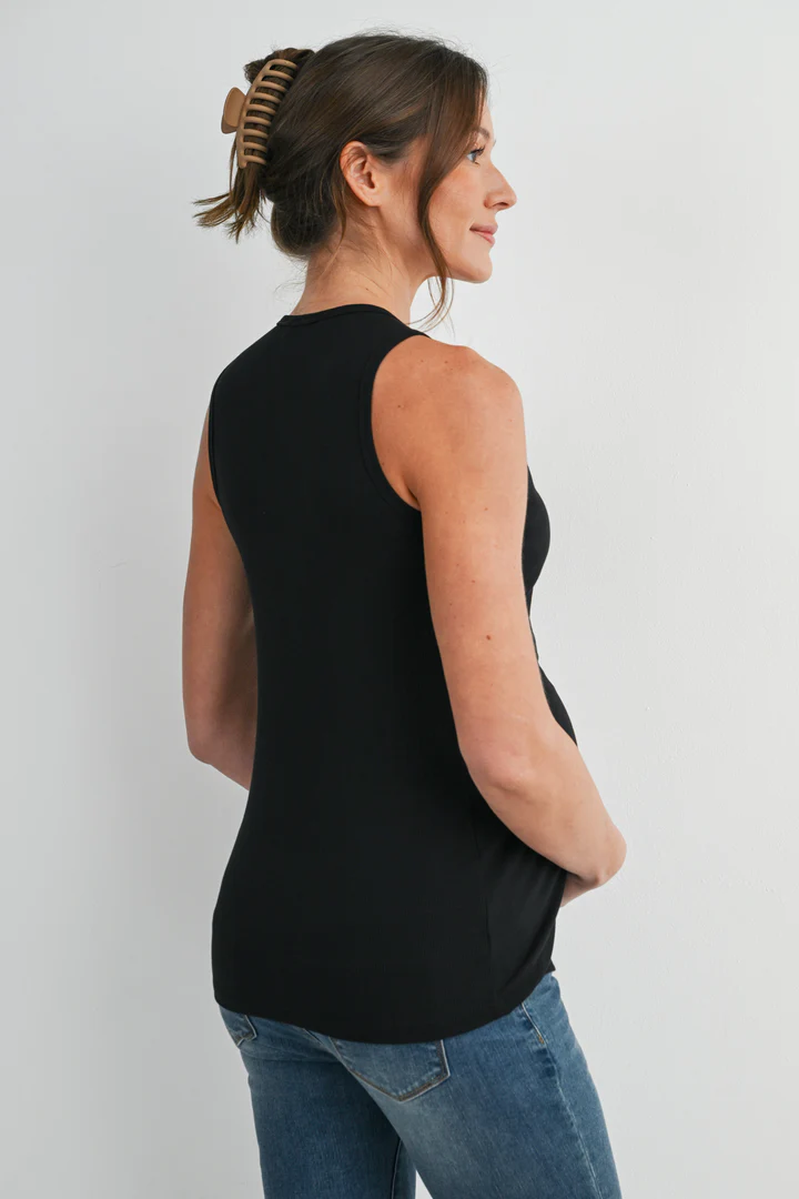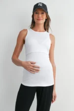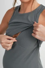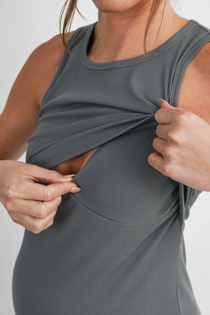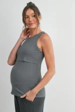 Designed for comfort and functionality, the Hello Miz Ribbed Sleeveless Maternity Nursing Tank Top with Lift-Up Panel features a soft, stretchy ribbed fabric that adapts to your growing body. A discreet lift-up panel allows easy, on-the-go nursing while maintaining full coverage. Lightweight, flattering, and perfect for pregnancy through postpartum.