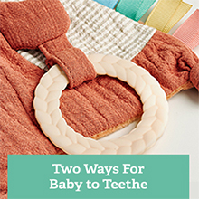 - Baby can teethe on the braided teething ring or the two knotted areas on the Bitzy Crinkle
