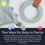 When it comes to teething, comfort is key for your little one. That’s why the Bitzy Crinkle offers not just one, but two ways for your baby to soothe their sore gums. With a braided teething ring attached to the top and two knots on the bottom of the crinkle, your baby has options. Whether they prefer the gentle massage of the teething ring or the satisfying chew of the knots, they can find relief while exploring the textures and sounds of this versatile toy.