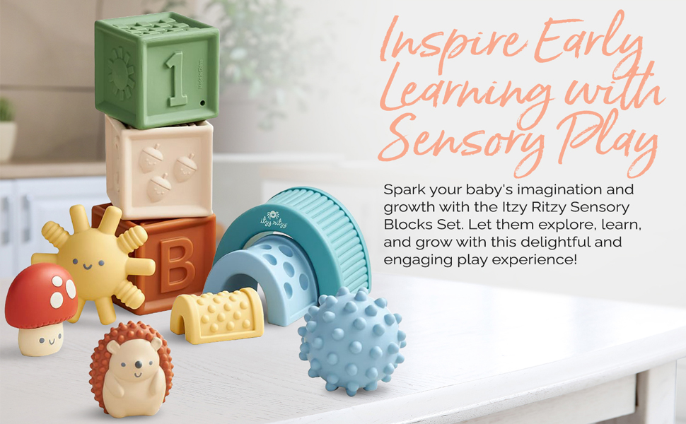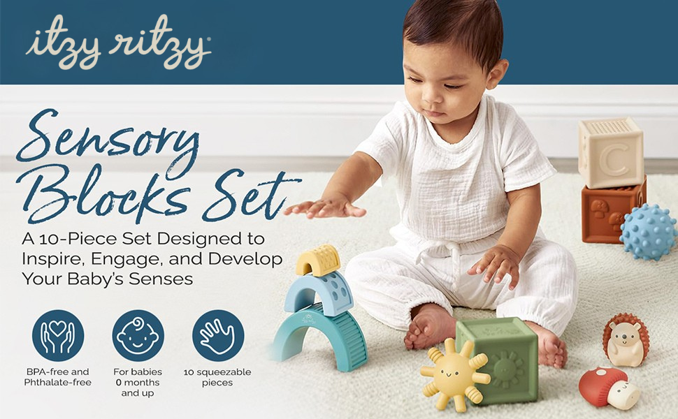 • PROMOTES MOTOR SKILLS: Watch your child’s motor skills flourish as they reach, grab, and stack the Itzy Ritzy Sensory Blocks. Designed to support early development, these baby stacking blocks provide endless opportunities for your little one to practice and perfect their movements.