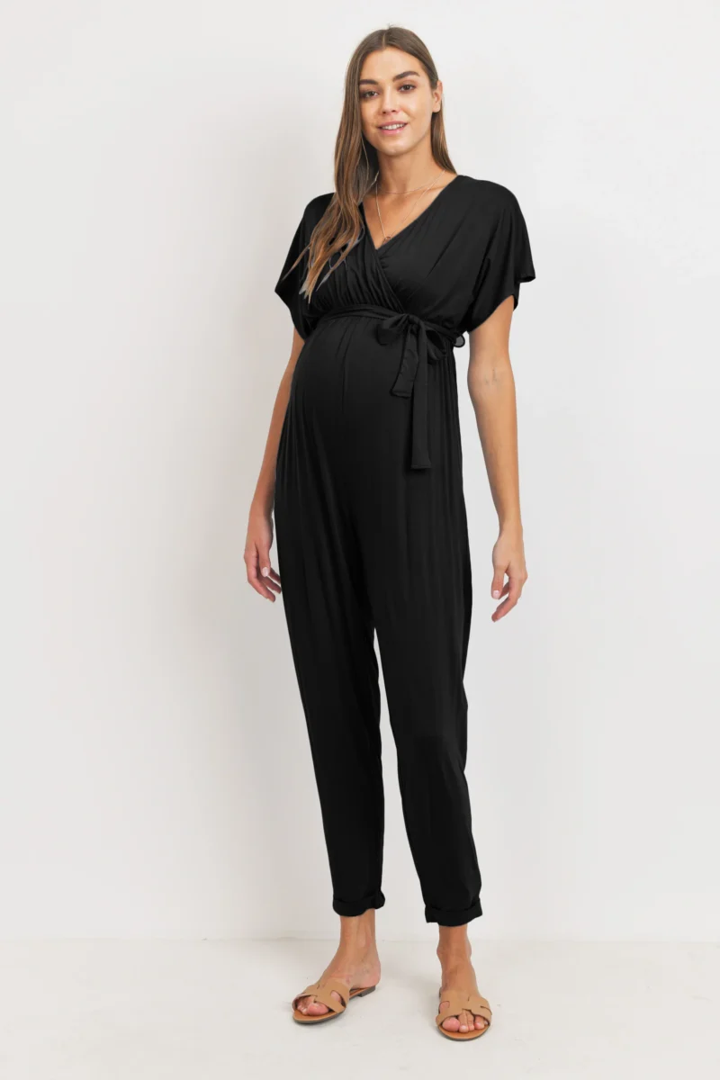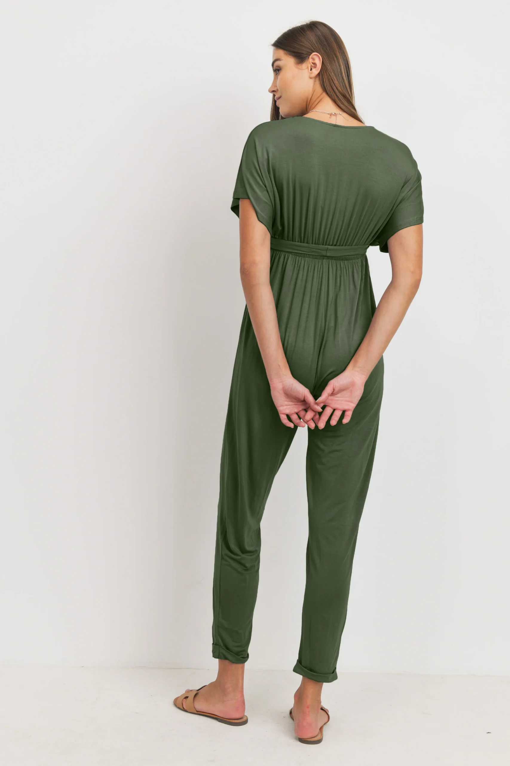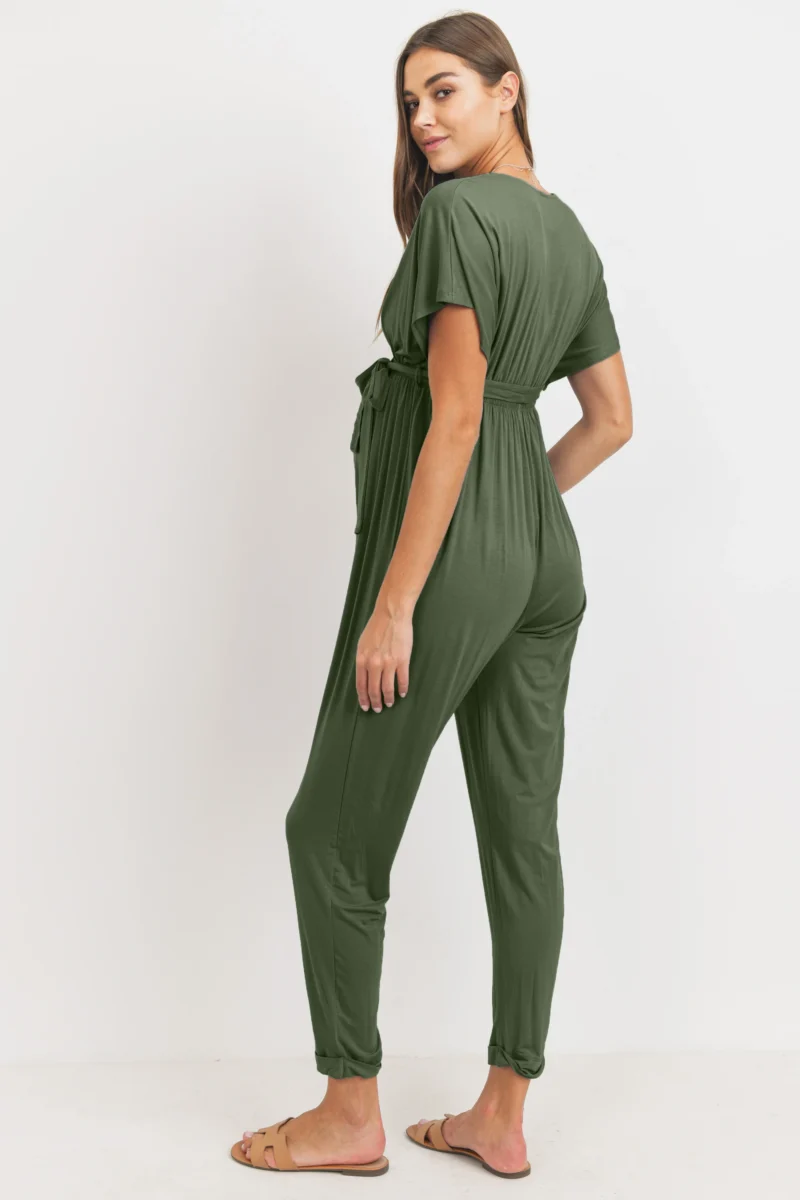 surplice/v-neck/dolman sleeve/waist belt/jogger fit/loose fit