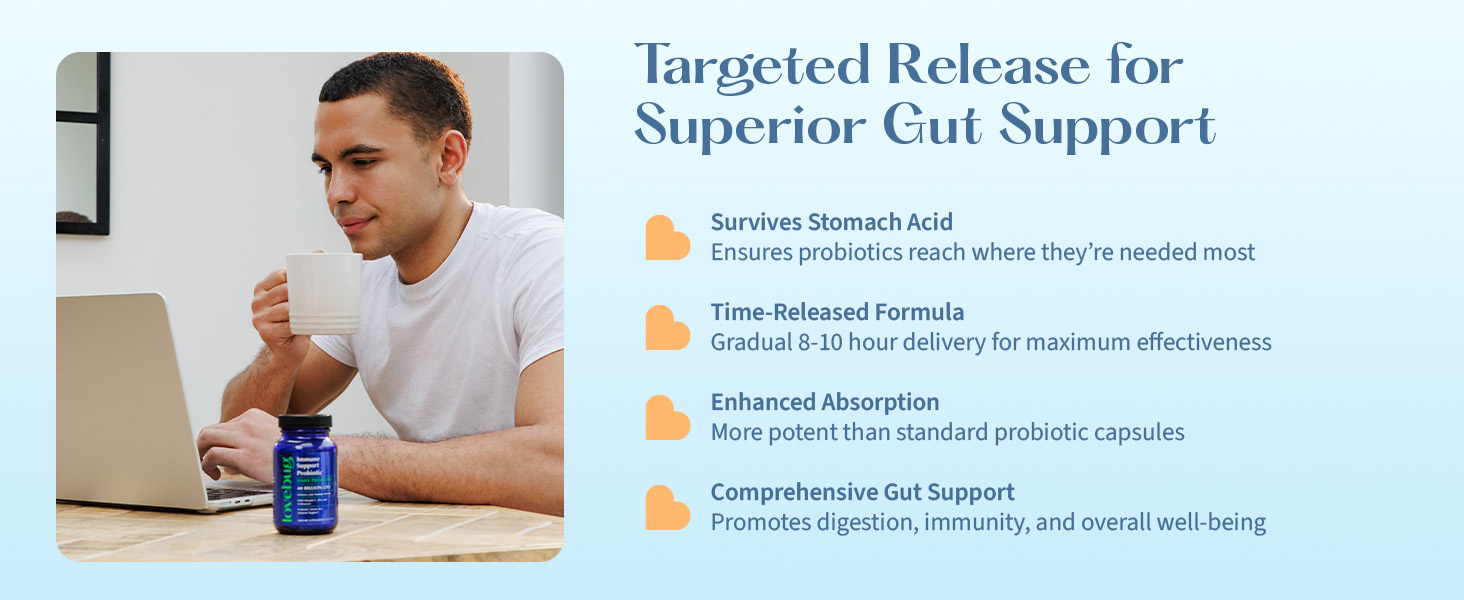 • REBUILD AND RESTORE. When the body’s microbiome is out of balance your entire body is out of balance, leading to upset stomach, constipation, diarrhea, poor immune health, and more. Your gut needs a maximum strength infusion of helpful, good bacteria . Our strains are designed and clinically studied to restore and rebuild that precious gut balance, helping you get back to living life.
