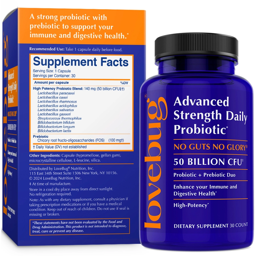 LOVEBUG Award Winning Maximum Strength | Rebuild & Restore Immune and Digestive Microbiome | 10 Clinically Studied Strains for Constipation, Diarrhea & Upset Stomach | 25 Billion CFU, 30 Tablets