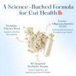 10 probiotics strains specifically studied for constipation, diarrhea and upset stomach. Formulated for Adults with out of balance gut and immune microbiomes – providing maximum comprehensive support. WITH ADDED PREBIOTICS to magnify effectiveness.