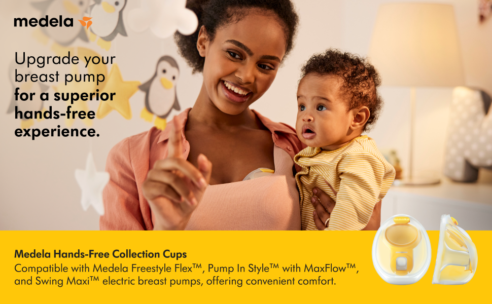 Medela Hands-Free Collection Cups, Compatible with Freestyle Flex, Pump in Style with MaxFlow, and Swing Maxi Electric Breast Pumps, 1 Set of 2 Cups