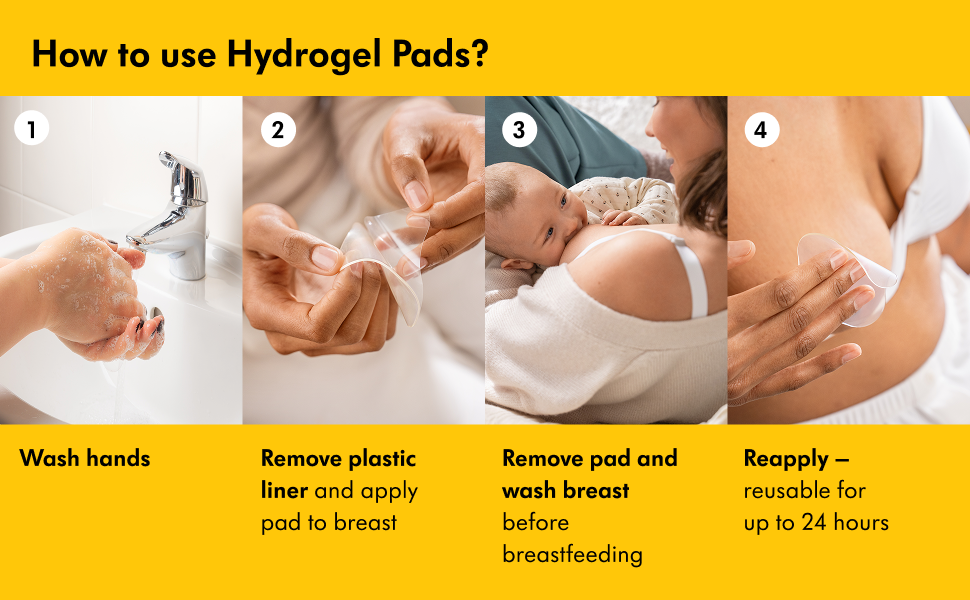 Experience instant pain relief with our Hydrogel Pads, providing comfort for sore or cracked nipples and facilitating healing by creating a moist environment. Enjoy immediate cooling relief, and for an extra refreshing sensation, store the pads in the fridge before use. With an additional barrier against rubbing, these discreet pads protect sensitive nipples when worn under bras and clothing. Sterile, individually wrapped, and reusable for up to 24 hours, they offer a convenient and cost-effective solution for ongoing nipple care. Dermatologically tested and free from preservatives, our pads prioritize the safety of breastfeeding moms, ensuring peace of mind with every use.
