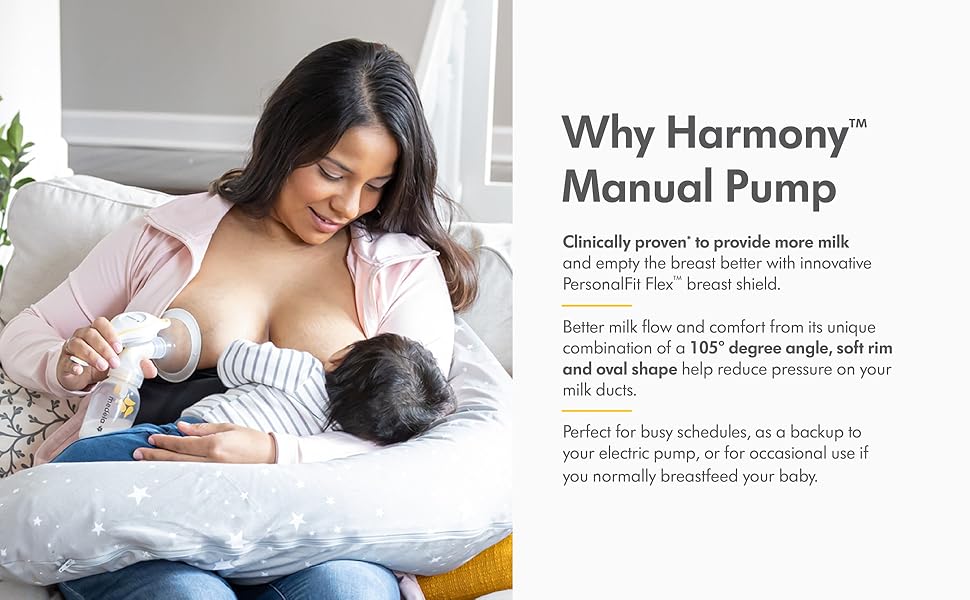 Harmony is a single, manual breast pump designed for occasional time away from your baby. This hand breast pump is a great option for travel or as an occasional back-up to your double electric breast pump. A small, lightweight, and portable design makes transport easy and discreet for convenient pumping at home, at work, or on the go. Best of all, Harmony now includes PersonalFit Flex breast shield which means more comfort and more milk*. These shields are designed to reduce pressure on the breast and optimize milk flow, giving you more milk faster.