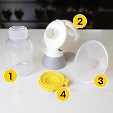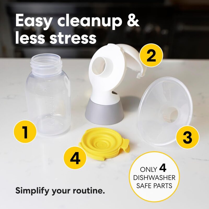 FAST CLEANUP & LESS STRESS: Only 4 parts to clean and assemble with the convenience of pumping directly into bottles for easy storage. Dishwasher safe, so you spend less time cleaning and more time with your baby.