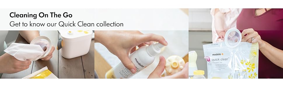 Quick Clean Breast Pump & Accessory Sanitizer eliminates 99.9% of germs on hard, non-porous surfaces with its safe, no rinse, no wipe formula. Sanitize your breast pump, breast shields, breast milk storage bottles and more in as little as 60 seconds. Containing no harsh chemicals, fumes, bleach, dyes, or alcohol, it is safe in nursery environments and perfect for quick and easy cleaning reassurance in unsanitary environments. The Quick Clean Breast Pump & Accessory Sanitizer is part of the Quick Clean family of products which are designed to simplify cleaning of your breast pump, parts, and breast feeding accessories in different situations.