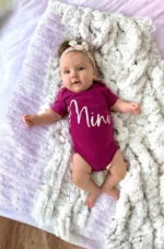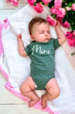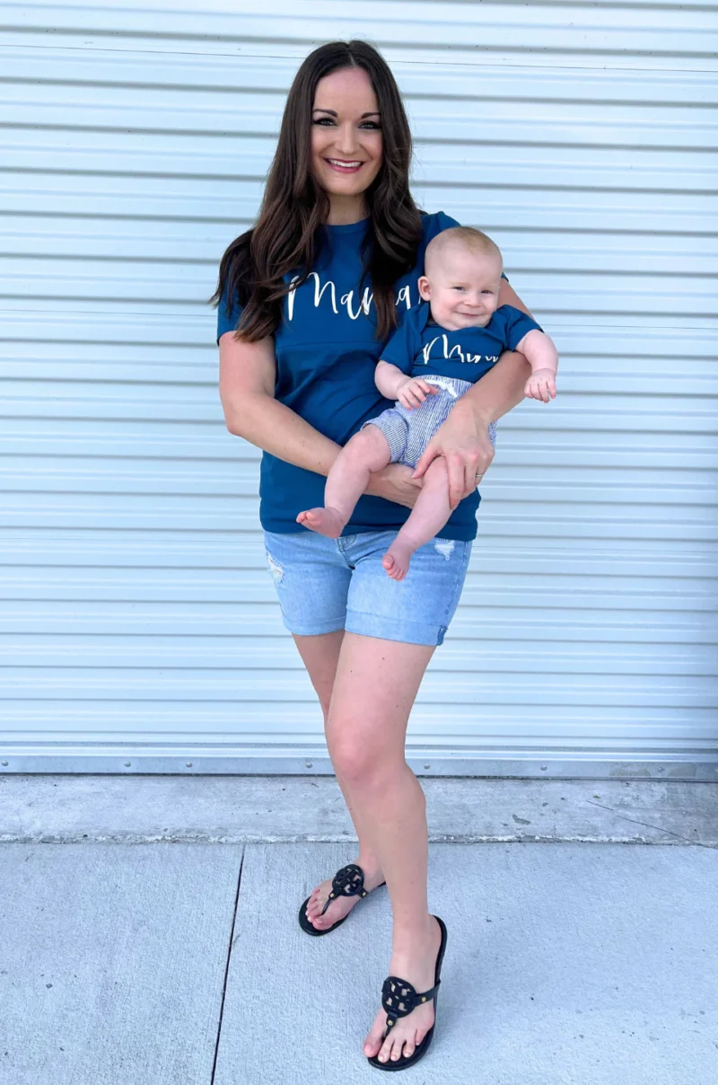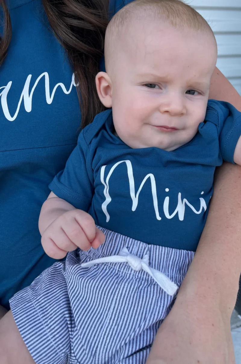Made for matching moments, this cursive Mini short sleeve onesie is a sweet everyday essential for your little one. Soft and breathable, it’s perfect for cuddles, playtime, and pairing with coordinating Mama styles.