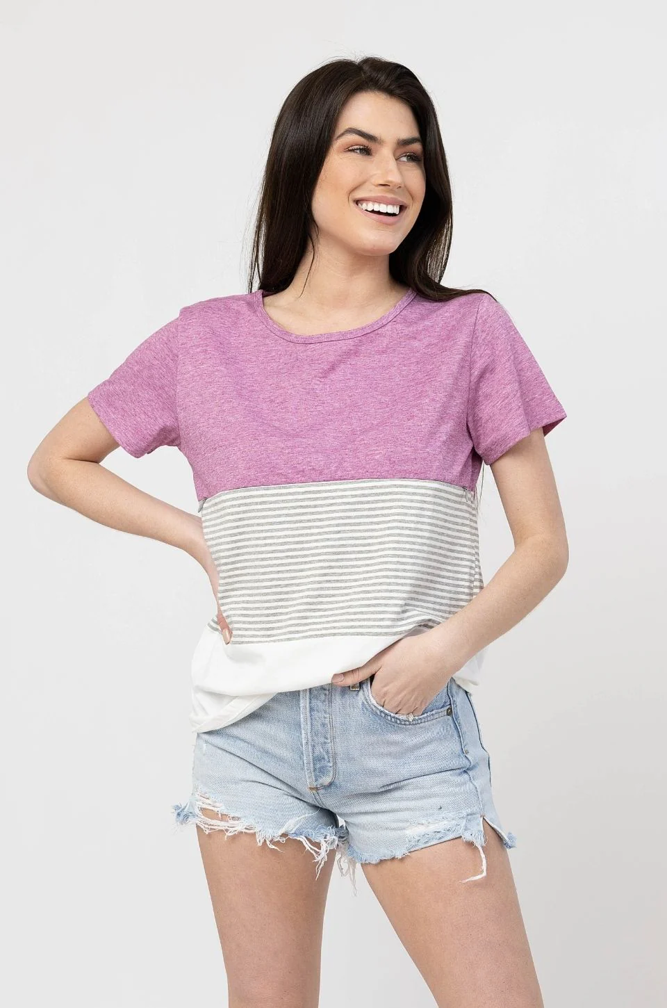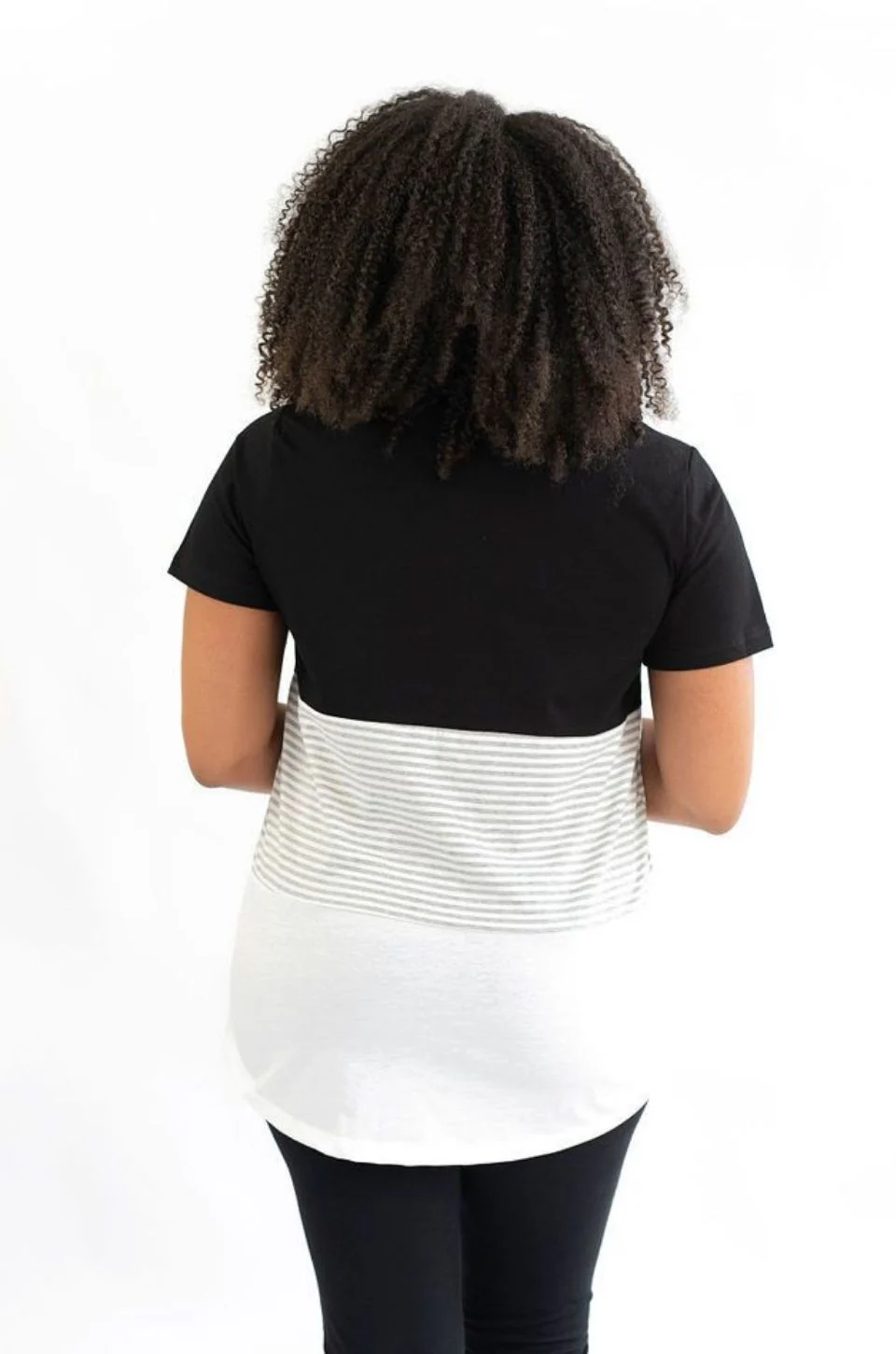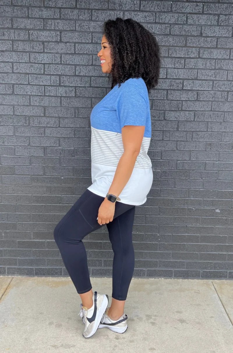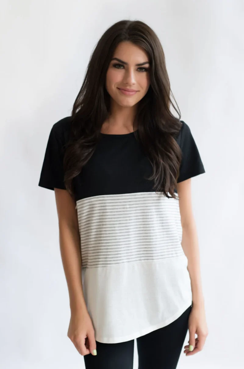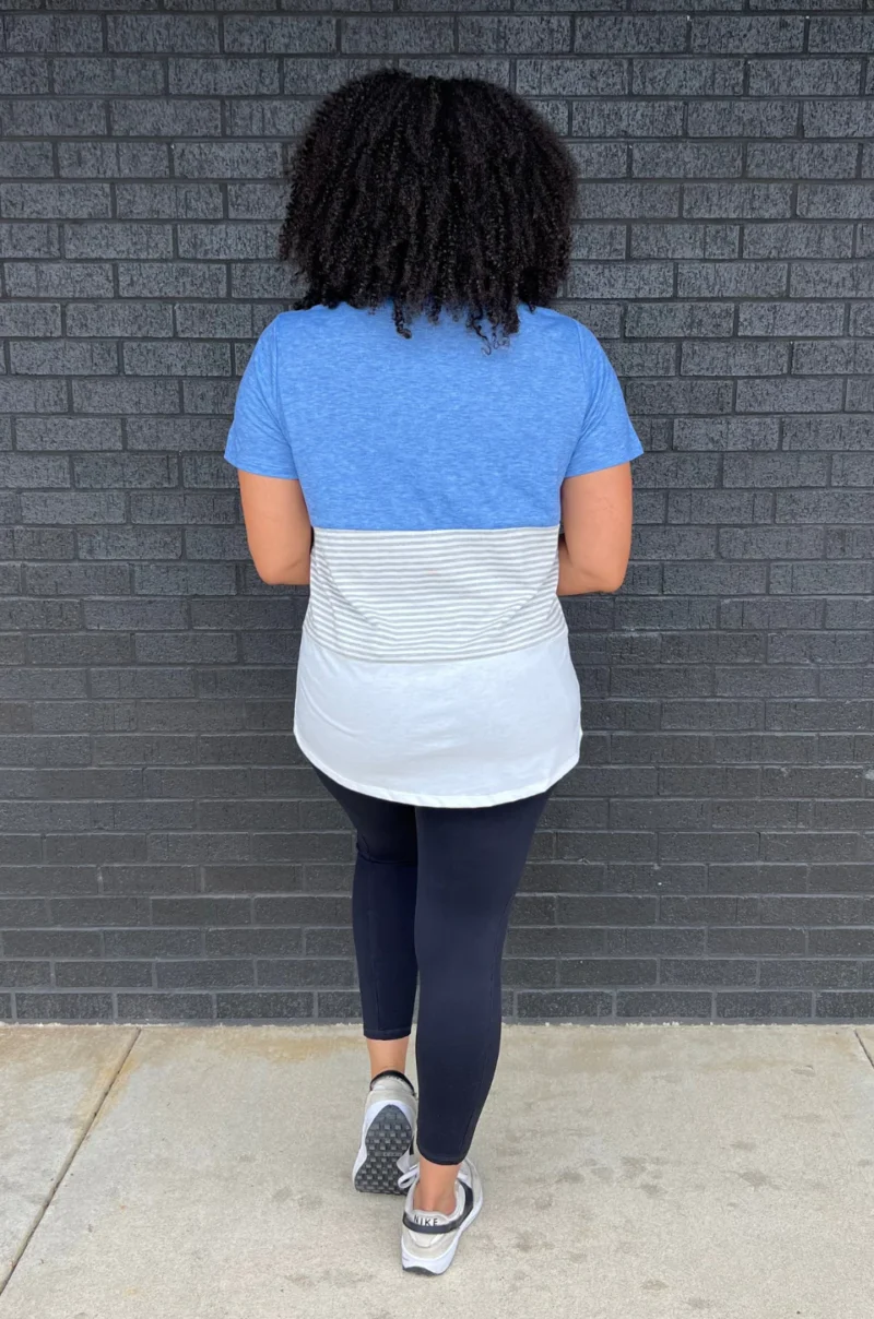 NURSING ACCESS: There’s a hidden zipper along the first colorblock line. This tshirt has one long zipper with pulls on both sides.