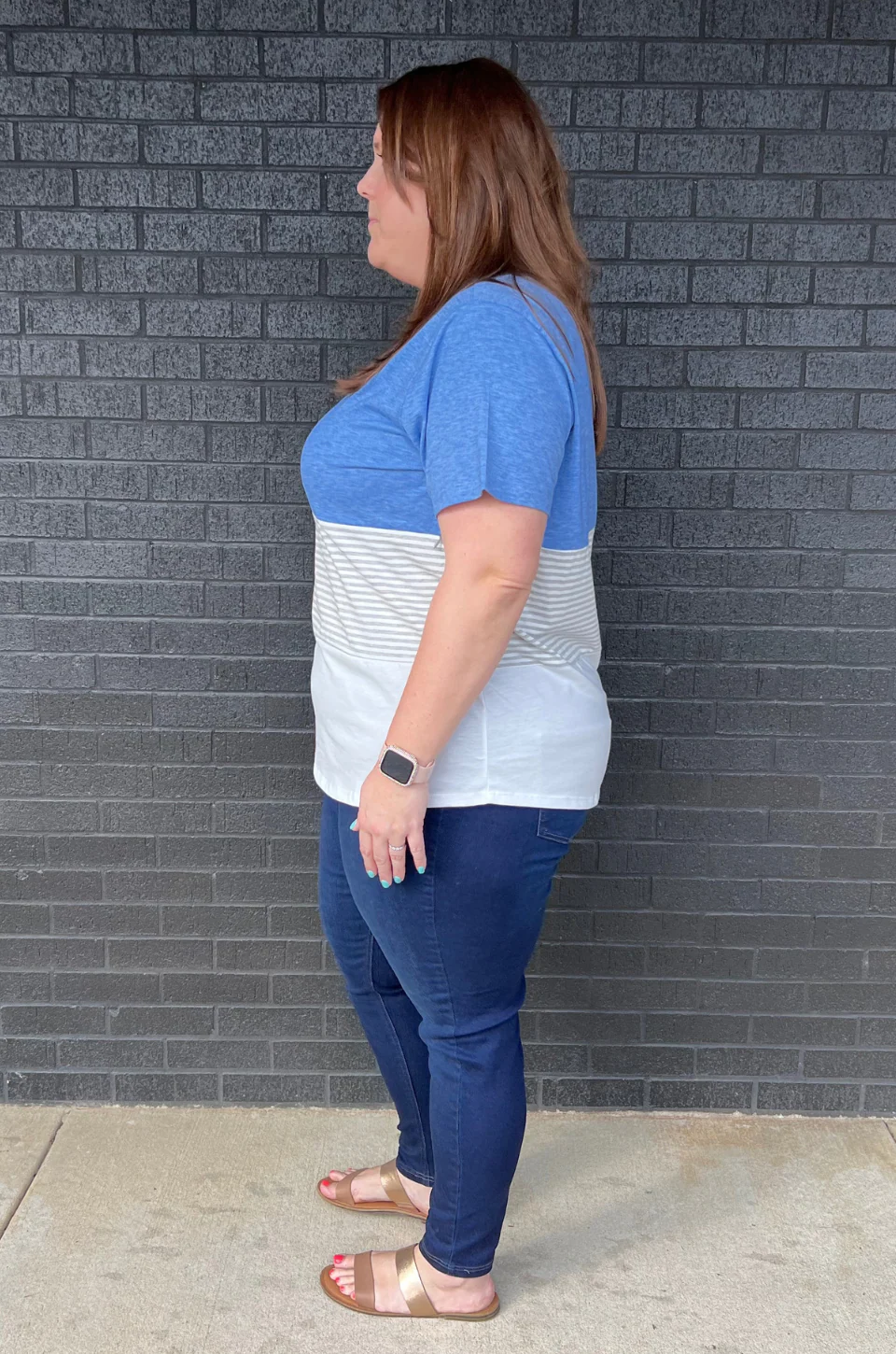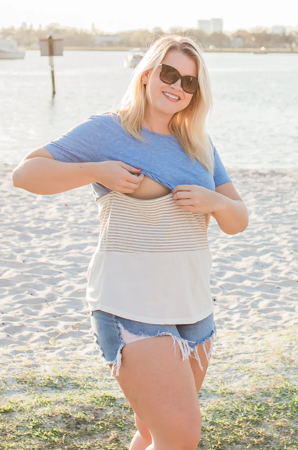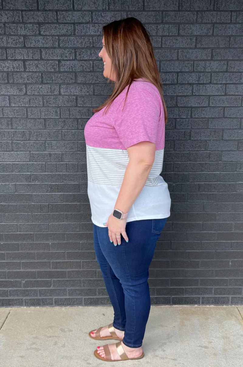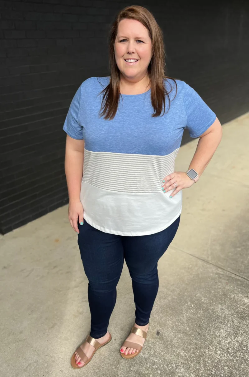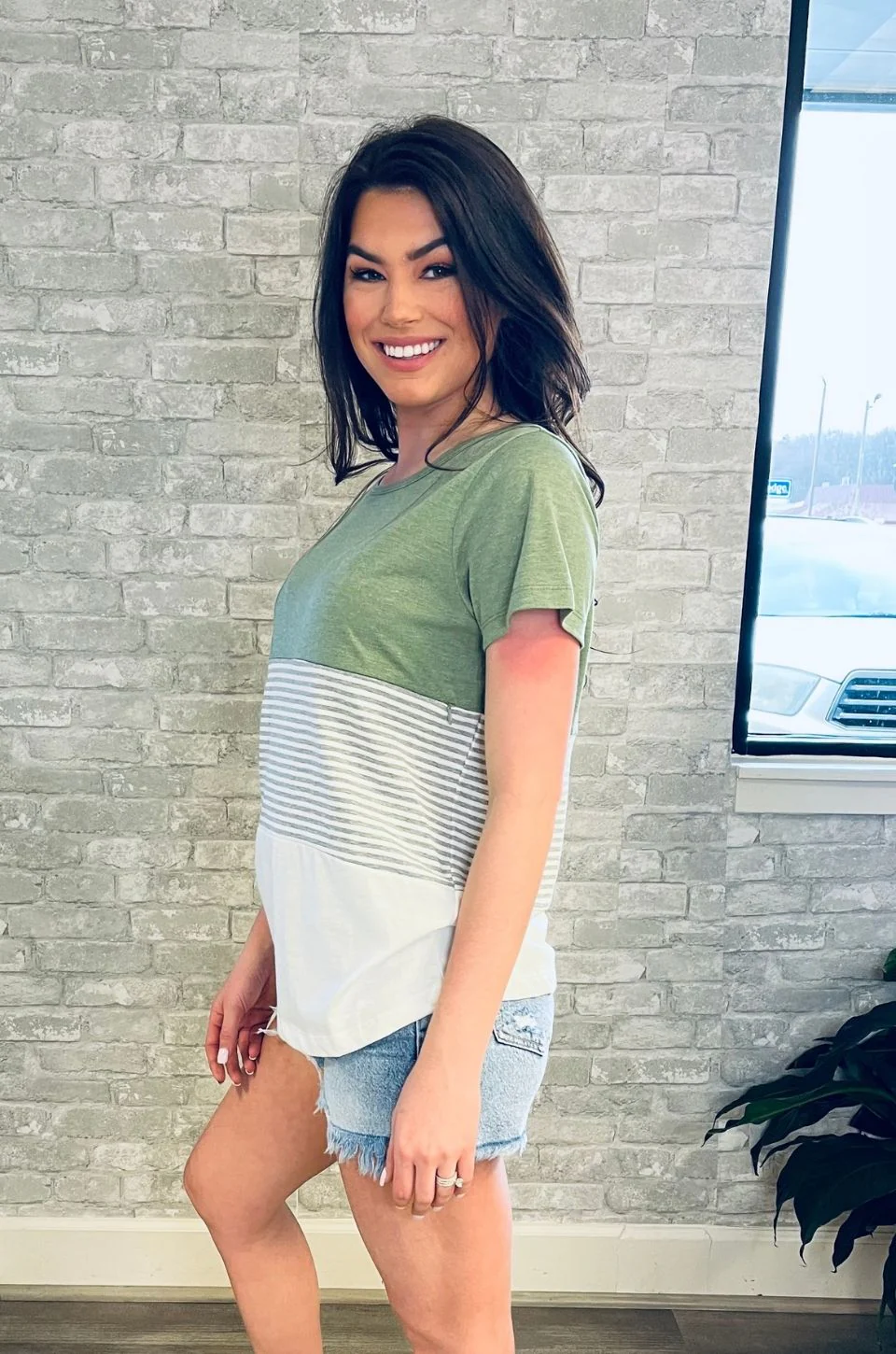 NURSING ACCESS: There’s a hidden zipper along the first colorblock line. This tshirt has one long zipper with pulls on both sides.