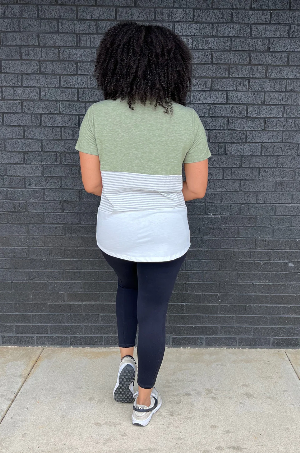 Long and loose! That’s the design of this nursing tee. No two layers here- for easy and cool breastfeeding. You will love it with leggings!