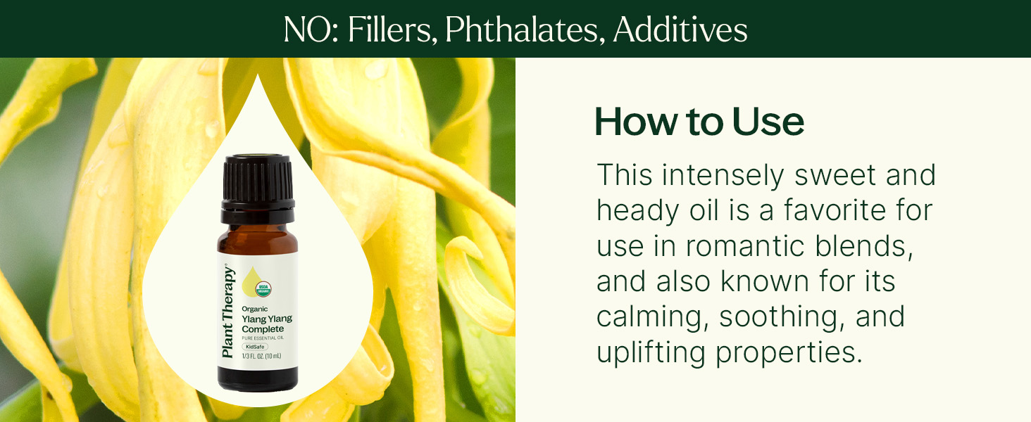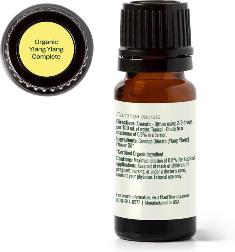 Plant Therapy Ylang Ylang Complete Organic Essential Oil, 100% Pure, USDA Certified Organic, Undiluted, Natural Aromatherapy, Romantic, Soothing Scent, 10 mL (1/3 oz)