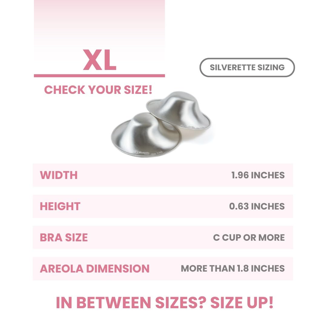 SILVERETTE® The Original Silver Nursing Cups, Nipple Covers for Breastfeeding Essentials, Pure 925 Silver Nipple Shields for Breastfeeding Newborn, Lightweight Nursing Cups, XL Size