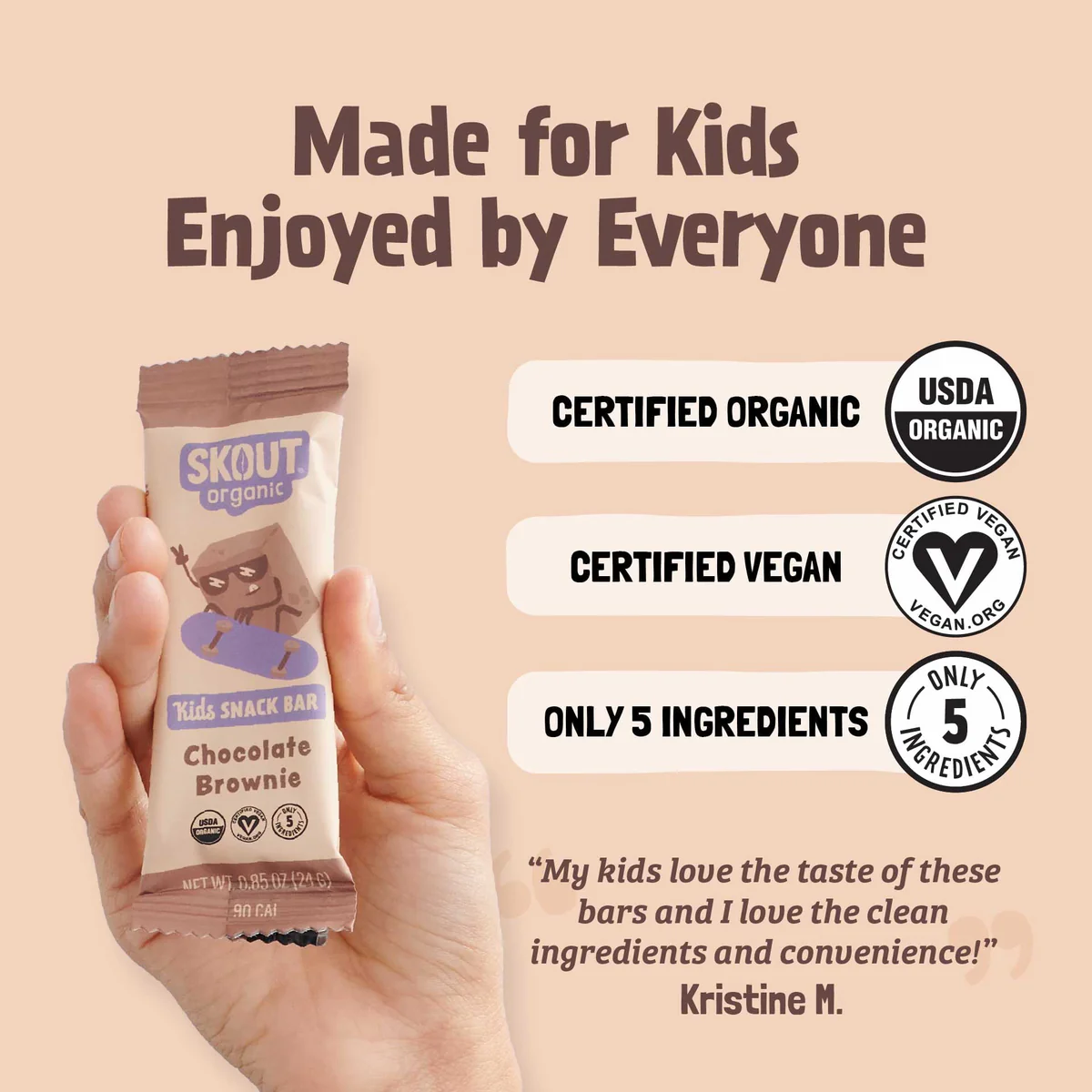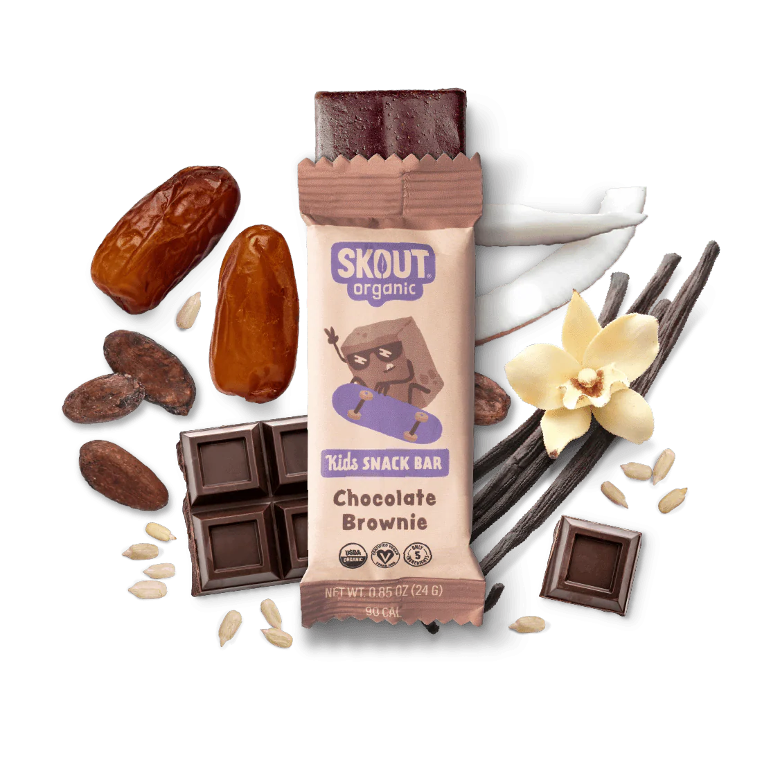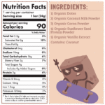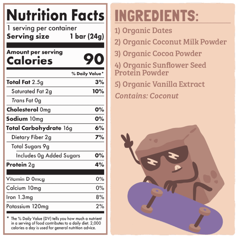 Organic Dates, Organic Coconut Cream, Organic Cocoa Powder, Organic Sunflower Seed Protein Powder, Organic Vanilla Extract.