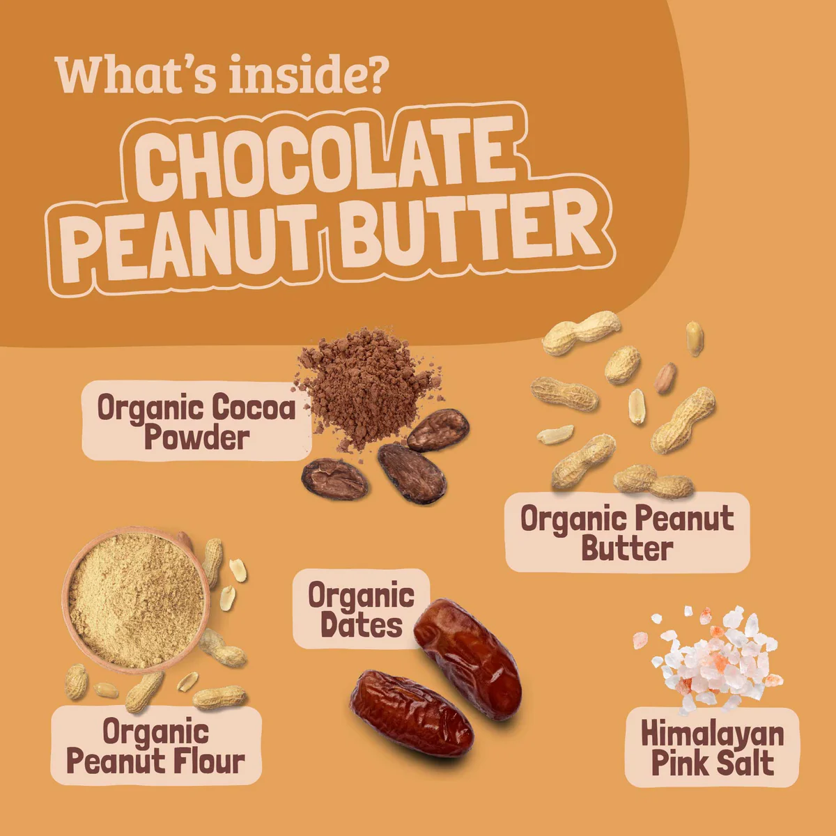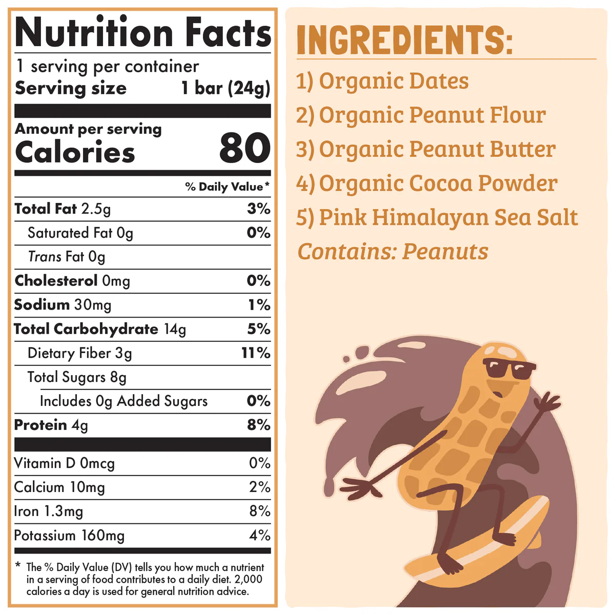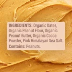 Organic Dates, Organic Peanut Flour, Organic Peanut Butter, Organic Cocoa Powder, Pink Himalayan Sea Salt.