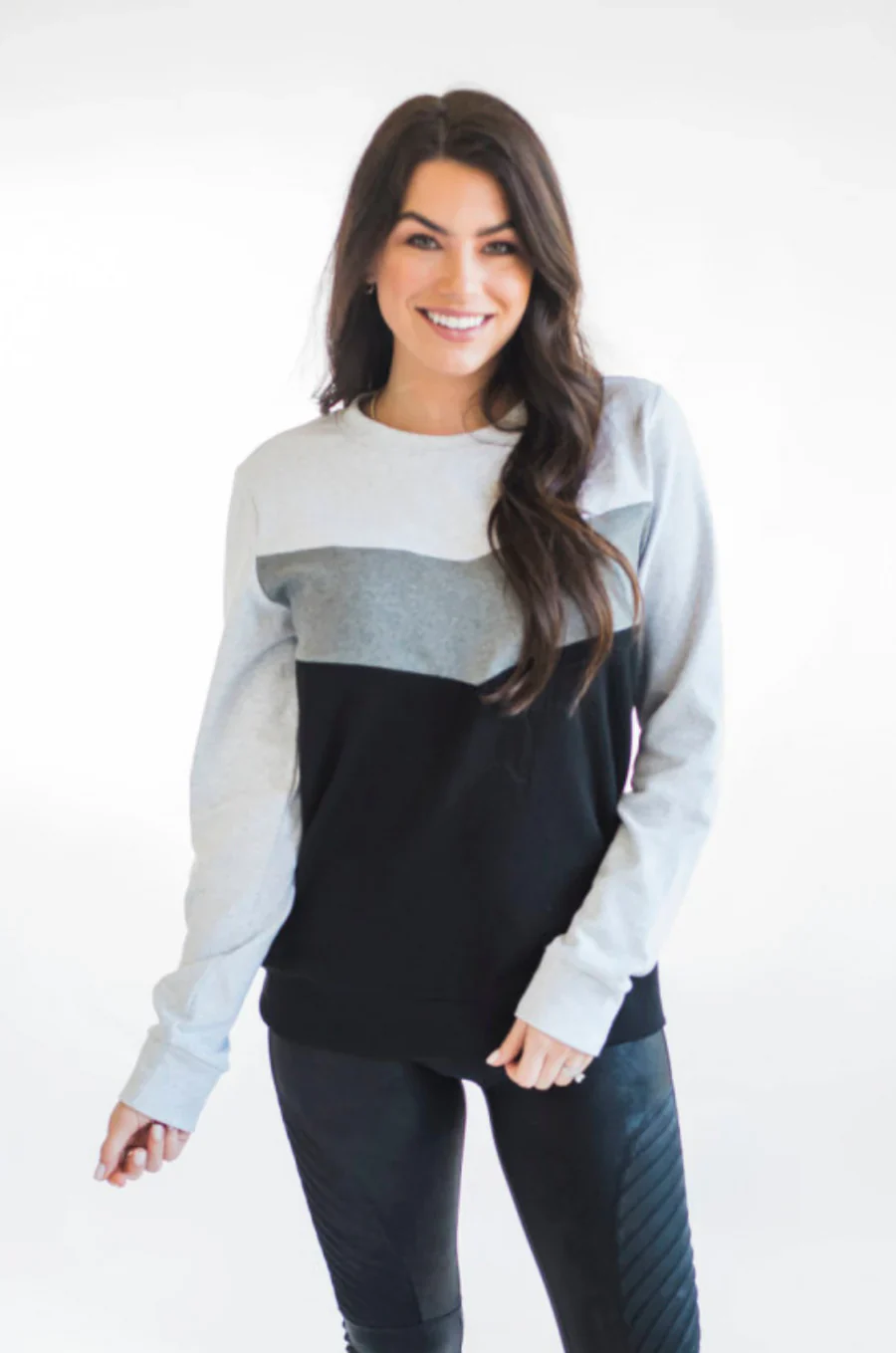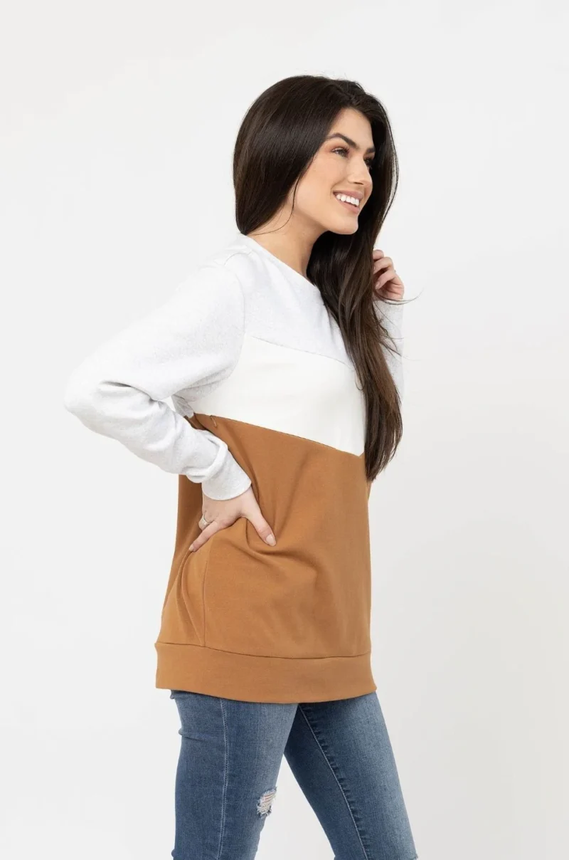 This is our #1 bestseller on the site! This nursing sweatshirt is SO soft and cozy and the design is trendy and super flattering!
