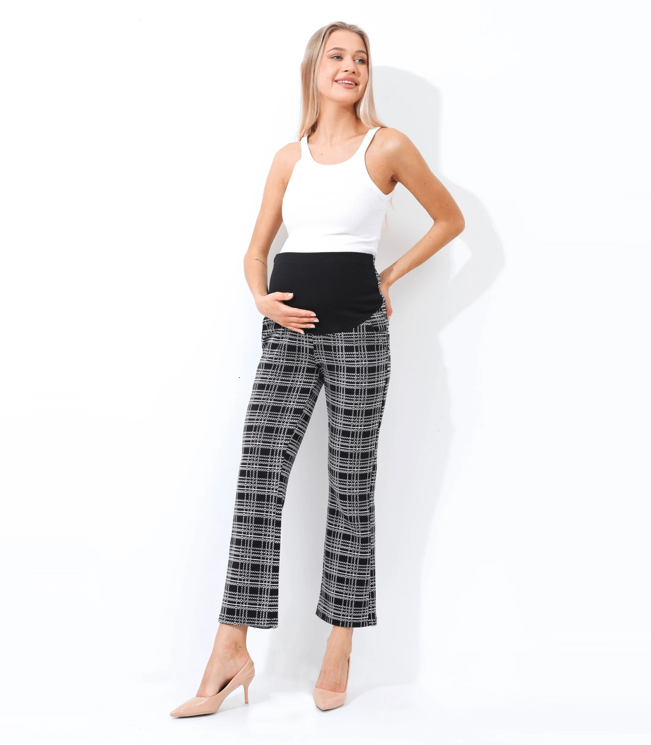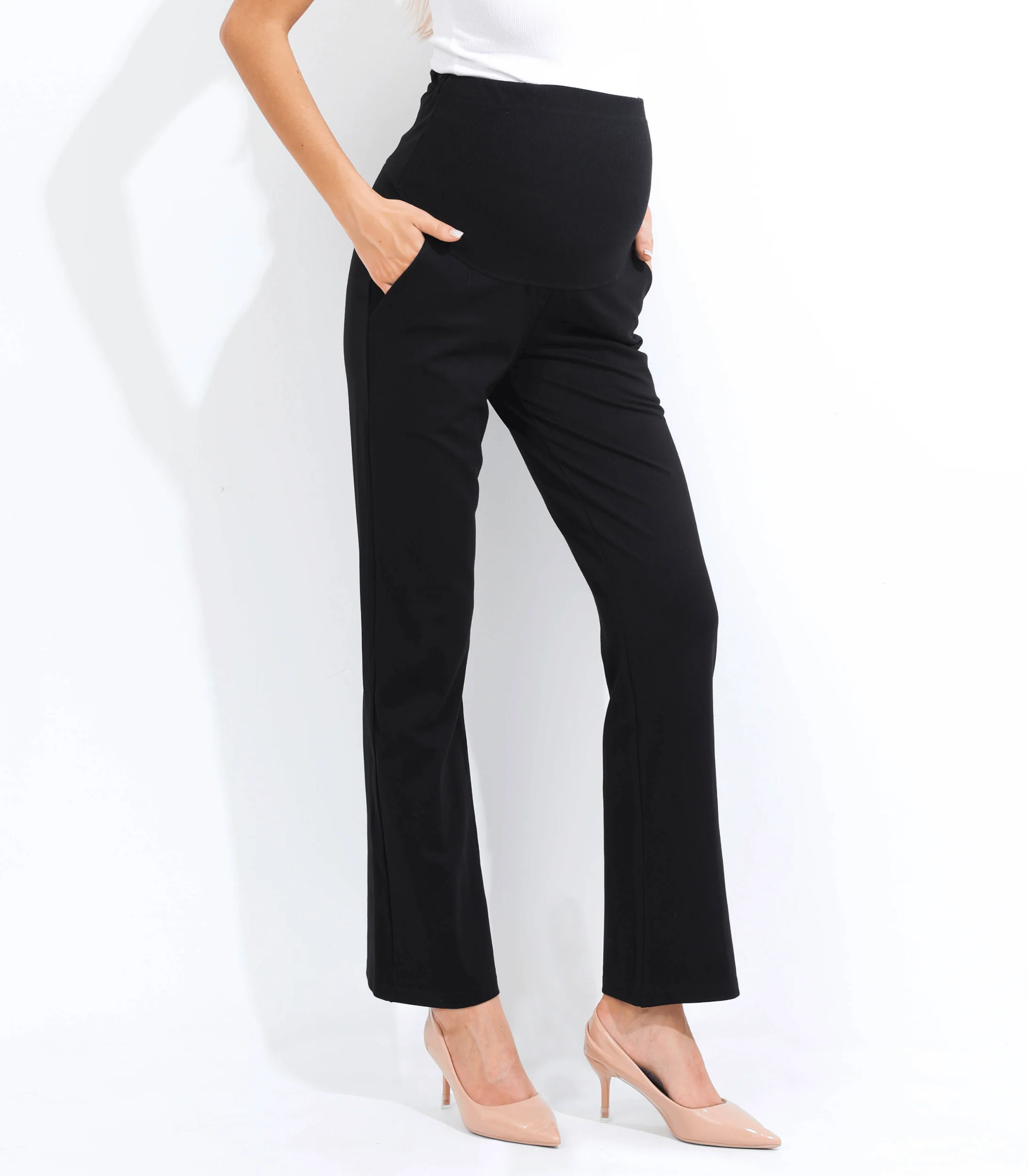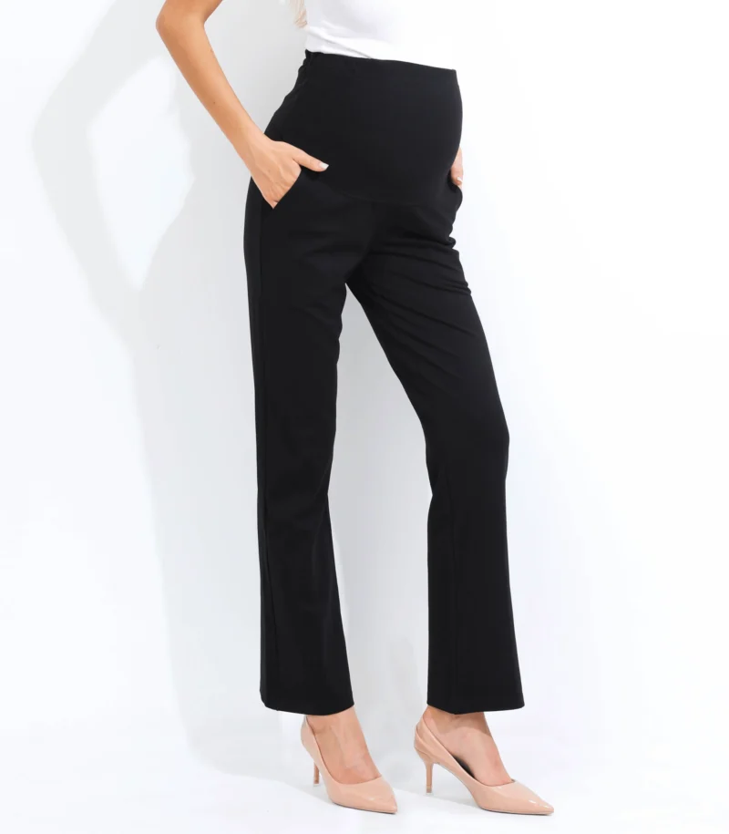 Maternity trouser pants are a comfortable and stylish option for pregnant women. These pants are designed to accommodate a growing belly, with a high waistband that sits above the belly and a comfortable, and a relaxed fit through the hips and thighs. The waistband is stretchy and elasticized to provide support and comfort throughout pregnancy as your bump grows. A favorite of our working moms’ these pants are perfect for the hybrid mommy-office life as they can be dressed up with a blouse and heels for a chic office look, or kept casual with a t-shirt and sneakers. If you’re looking for maternity pants for work, these are a great option. They are a versatile and practical choice for any stage of pregnancy and can be worn after pregnancy as well. Ultra big pockets will come in handy for your busy life.