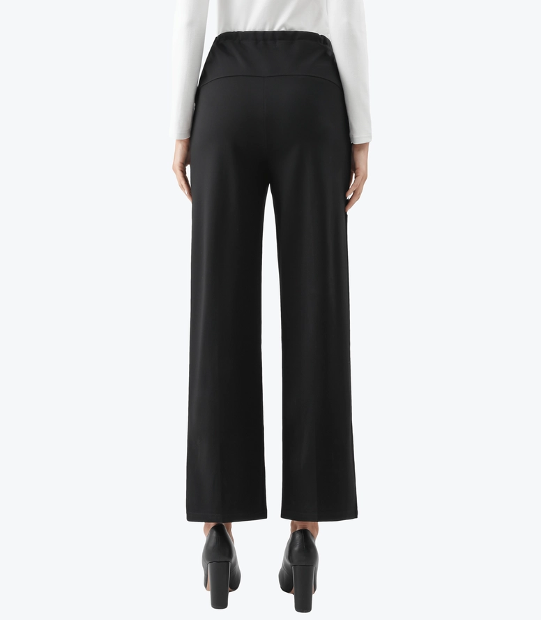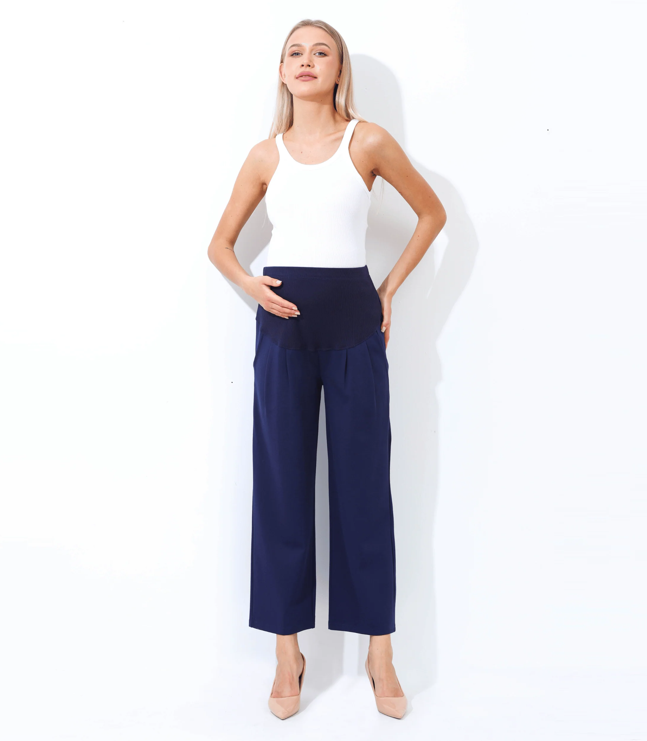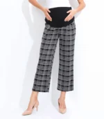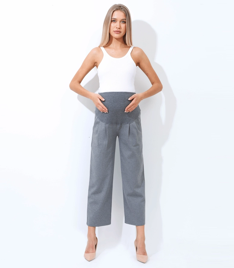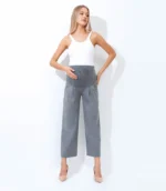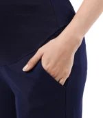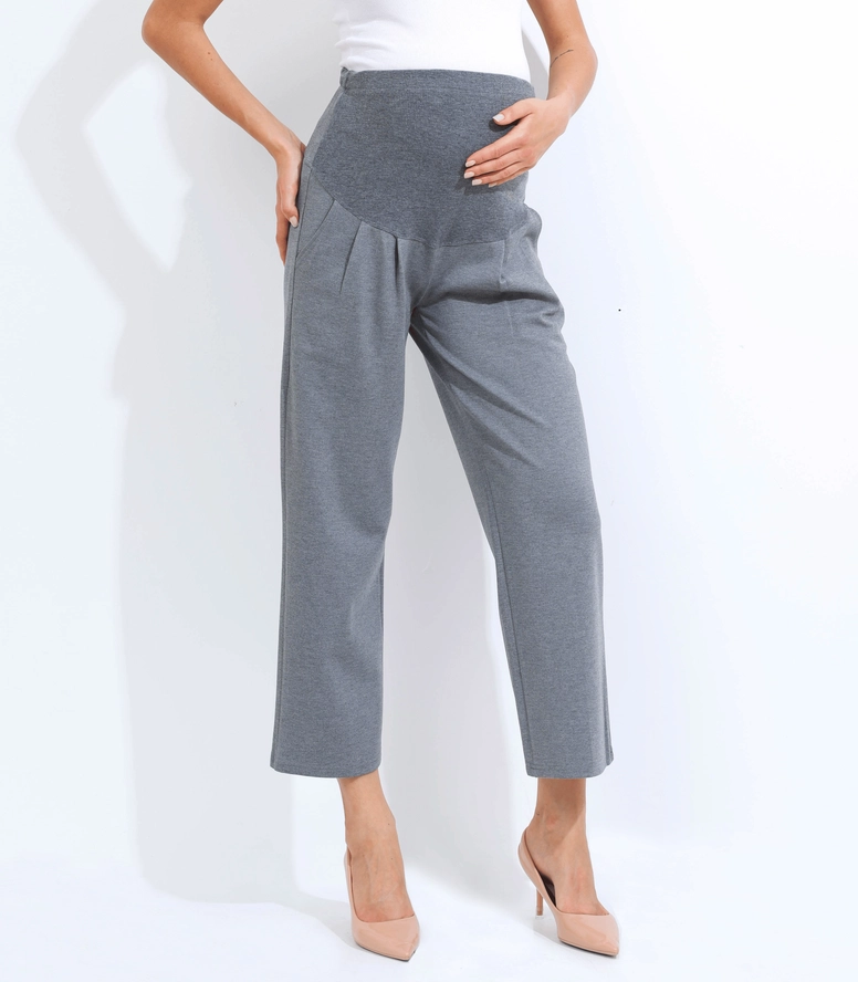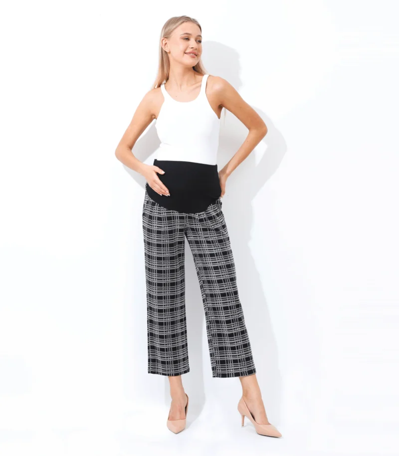 This wide leg ankle length maternity pant is a comfortable and stylish option for pregnant women. Designed to accommodate a growing belly, these pants feature a wide leg silhouette that falls to the ankle and a high waistband that sits above the belly. The waistband is stretchy and elasticized to provide support and comfort during pregnancy. These pants are made from a soft and stretchy fabric that moves with the body, allowing for ease of movement. They can be dressed up with a blouse and heels for a chic office look, or kept casual with a t-shirt and sneakers. The wide leg and ankle length make these pants a flattering choice for any stage of pregnancy, and they can be worn after pregnancy as well! Big practical pockets for your busy life.